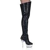 5 3/4 Spike Heel Platform Thigh Boot Women's Size Shoe With Glitter and Full Inner Side Zipper.