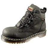 Hardwick steel toe 5-tie boot. Safety steel toe. Shock-absorbing, slip-resistant PVC sole. Moisture-wicking lining and padded footbed, tongue and ankle collar. Electric hazard rated. Water resistant full-grain leather uppers.